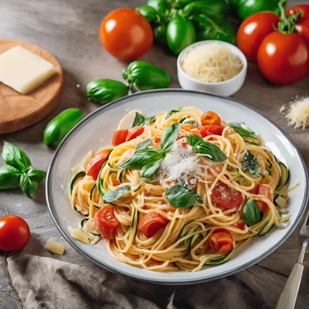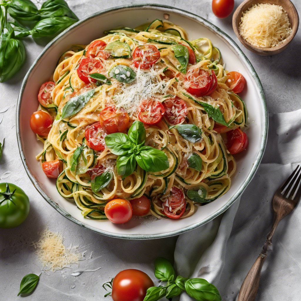 The Tomato Basil Zucchini Pasta is a delightful and healthy dish that has gained popularity in recent years. This dish originated in Italy, where fresh, seasonal ingredients are celebrated. The combination of ripe tomatoes, fragrant basil, and tender zucchini creates a burst of flavors that is both satisfying and refreshing. The addition of a sprinkle of parmesan cheese adds a rich and savory note to the dish, elevating its taste to a whole new level. Chefs in Italy and around the world have put their own spin on this classic dish, incorporating their unique techniques and local ingredients. The best versions of this dish can be found in authentic Italian trattorias, where the pasta is made from scratch and the tomatoes and basil are sourced from local farms. To make the perfect Tomato Basil Zucchini Pasta, it's crucial to use the freshest ingredients possible. Ripe, juicy tomatoes and fragrant, vibrant basil are essential for capturing the essence of this dish. Additionally, using high-quality parmesan cheese will enhance the overall flavor profile. For a twist on the traditional recipe, some chefs also add a touch of red pepper flakes for a hint of heat. Today, this dish can be found on the menus of Italian restaurants worldwide, and it has also become a favorite among home cooks looking for a quick and healthy meal option. Whether enjoyed in a bustling trattoria in Rome or prepared in a cozy kitchen at home, the Tomato Basil Zucchini Pasta with a sprinkle of parmesan cheese is a timeless classic that never fails to delight the senses.