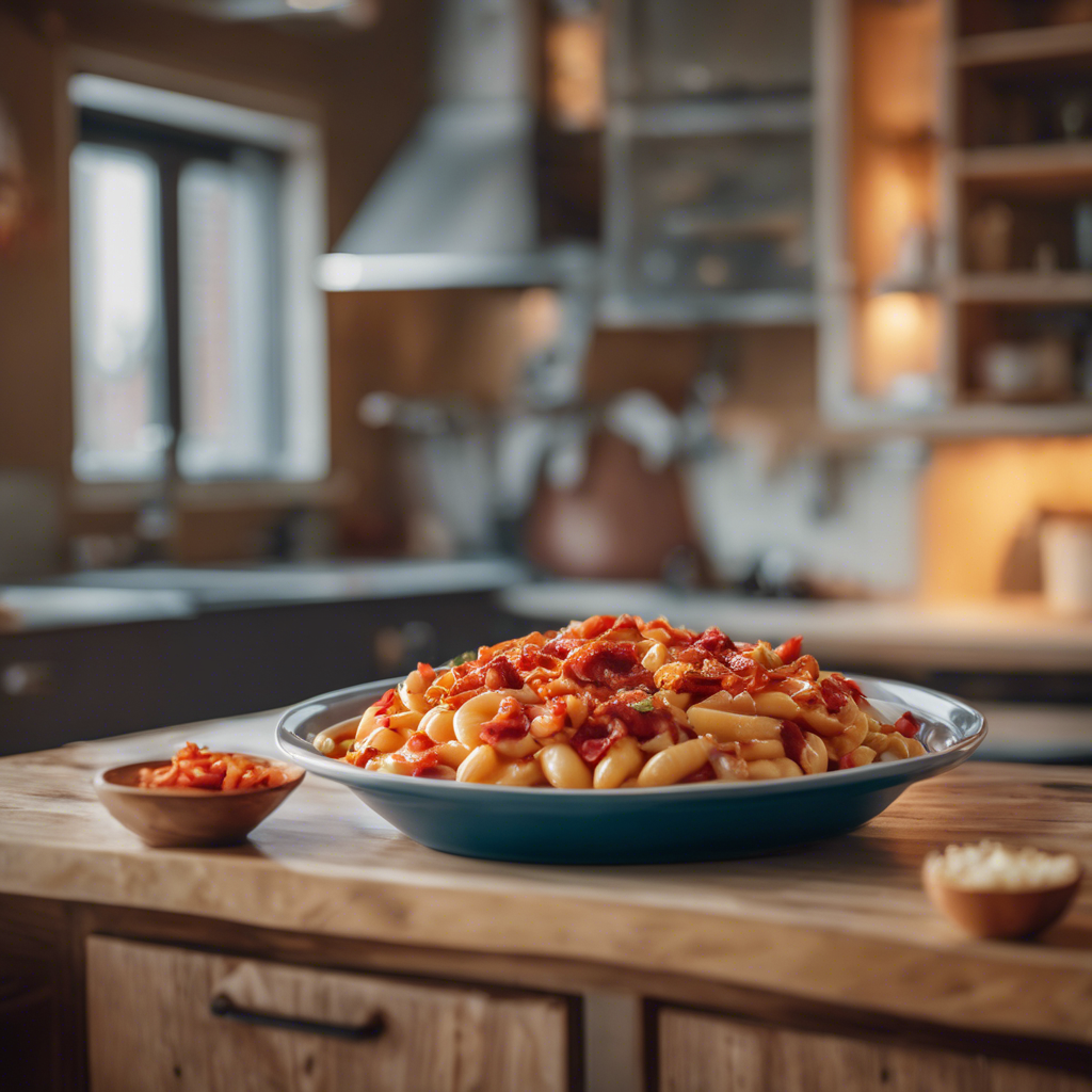 The history of Tomato Velveeta Shells and Cheese with added bacon bits can be traced back to the fusion of American and Italian cuisines. This dish combines the creamy, cheesy goodness of Velveeta with the savory flavor of bacon bits and the tangy sweetness of tomatoes. It's a comfort food favorite that has evolved over time, with chefs and home cooks adding their own twists to the classic recipe. In the southern United States, this dish has become a staple in many households, often served at family gatherings and potlucks. The addition of bacon bits brings a smoky, salty element to the rich and velvety cheese sauce, creating a mouthwatering combination of flavors. Today, the best version of this dish can be found in cozy diners and family-owned restaurants across the country, where chefs take pride in perfecting the balance of creamy cheese, tangy tomatoes, and crispy bacon. The key to getting this dish right lies in using high-quality ingredients, especially the Velveeta cheese and ripe, juicy tomatoes. For a famous alternative method, some cooks opt to bake the dish with a breadcrumb and bacon bit topping for added crunch and flavor. Whether enjoyed as a side dish or a main course, Tomato Velveeta Shells and Cheese with added bacon bits is a beloved comfort food that continues to bring joy to diners of all ages.