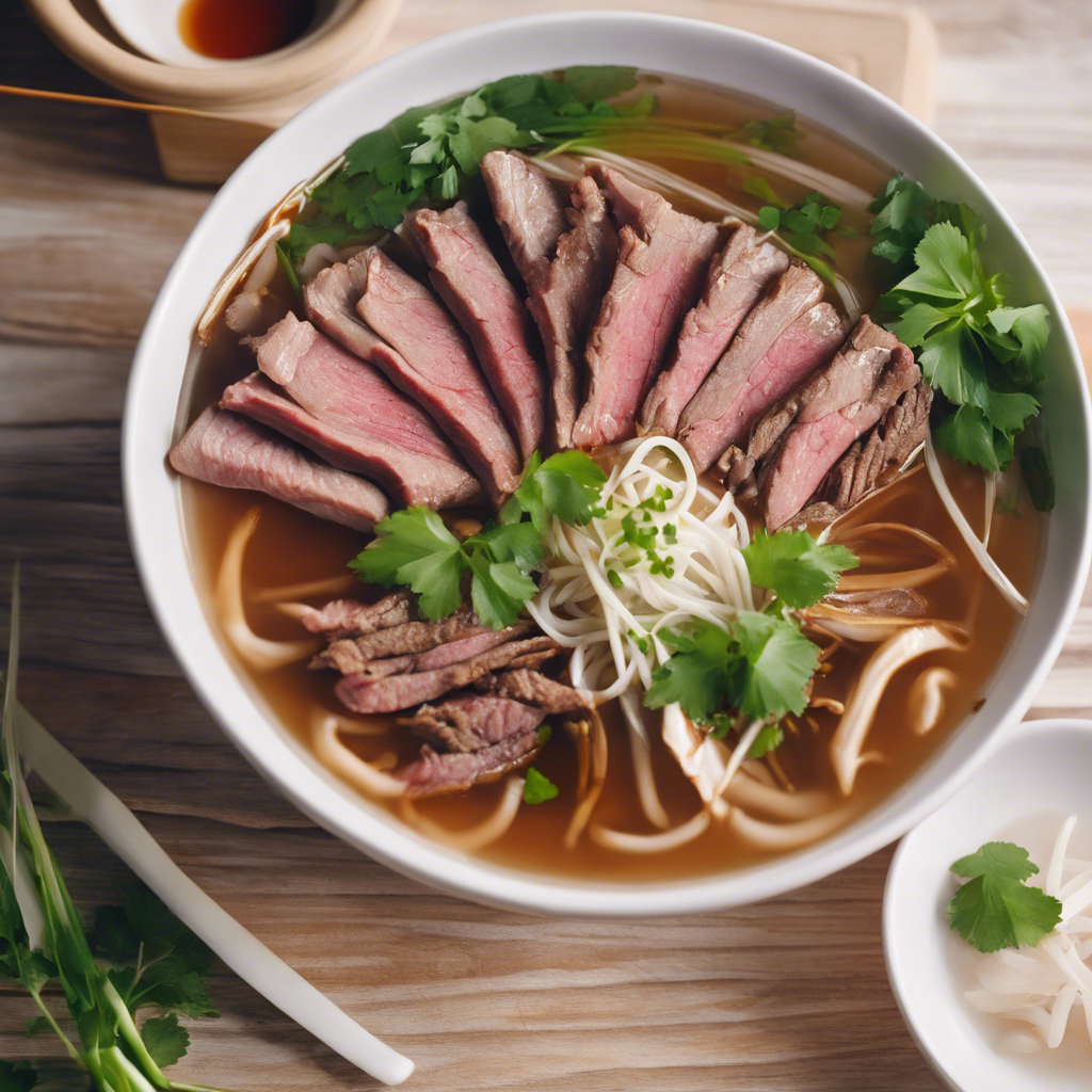 Traditional Beef Pho with thinly sliced rare beef is a beloved Vietnamese dish with a rich history. Originating in the early 20th century in Hanoi, it has since become a staple of Vietnamese cuisine. The dish features a fragrant and complex broth, made by simmering beef bones, charred onions, and spices like star anise and cinnamon for hours. Thinly sliced rare beef is added to the piping hot broth just before serving, allowing it to cook slightly while retaining its tender texture. This dish is often served with fresh herbs, bean sprouts, lime, and chili for a burst of flavor and freshness. In Vietnam, skilled chefs and street vendors take pride in their unique pho recipes, each with its own blend of spices and cooking techniques. The best versions of this dish can be found in Hanoi and Saigon, where renowned pho restaurants have been perfecting their recipes for generations. One such establishment is Pho Gia Truyen in Hanoi, known for its exceptional beef pho with thinly sliced rare beef. To make traditional Beef Pho with thinly sliced rare beef, it's crucial to use high-quality beef and to slice it thinly against the grain to ensure tenderness. The broth is the heart of this dish, so taking the time to simmer the bones and spices is essential for developing its deep, savory flavor. While rare beef is the classic choice for this dish, some variations include using well-done beef or even chicken for a unique twist on the traditional recipe. In conclusion, Traditional Beef Pho with thinly sliced rare beef is a dish steeped in history and culinary expertise, with its roots in Vietnam's vibrant food culture. Whether enjoyed in a bustling Vietnamese market or at a renowned restaurant, this flavorful and aromatic dish continues to captivate food enthusiasts around the world.
