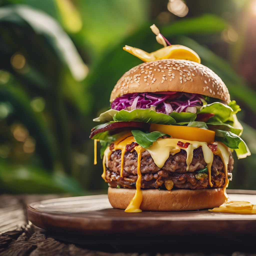 Tropical Burger is a mouthwatering fusion of flavors, originating from the vibrant culinary scene of the Caribbean. This delectable dish combines the juicy goodness of a classic burger with the exotic twist of tropical fruits and spices. The succulent patty, often made with a blend of ground beef and Caribbean seasonings, is grilled to perfection. Topped with slices of sweet pineapple, tangy mango salsa, and zesty jerk sauce, it's a tantalizing explosion of taste. Renowned chefs in the Caribbean, particularly in Jamaica and Barbados, have perfected this recipe, infusing it with their unique culinary expertise. For the ultimate experience, seek out a local Caribbean eatery for an authentic Tropical Burger that will transport your taste buds to paradise.