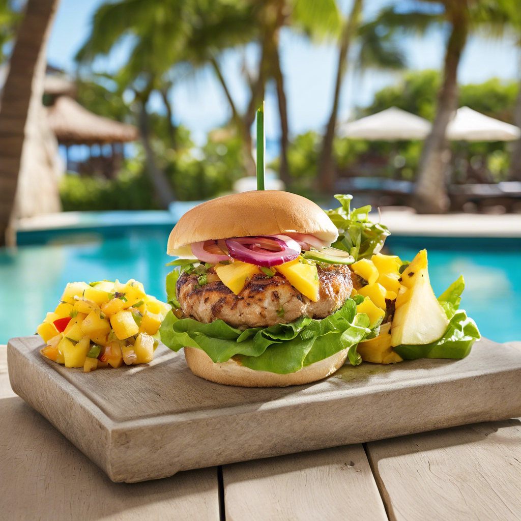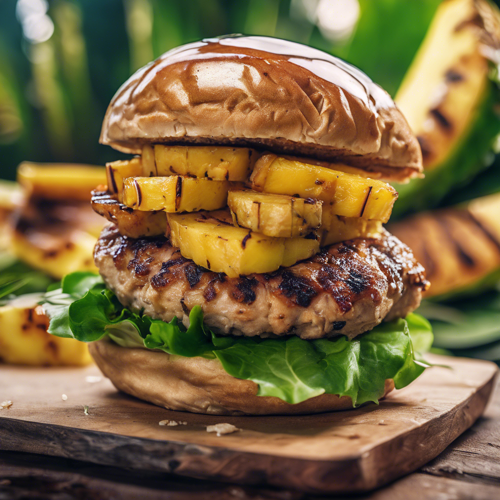 The Tropical Turkey Burger served on a grilled pineapple ring is a delightful twist on the classic burger. This innovative dish is believed to have originated in the tropical regions of Hawaii, where the abundance of fresh pineapples inspired chefs to experiment with new ways to incorporate this sweet and tangy fruit into their cuisine. The juicy and lean turkey patty is seasoned with a blend of tropical spices, giving it a burst of flavor that perfectly complements the caramelized sweetness of the grilled pineapple. This unique creation has gained popularity in beachside restaurants and resorts, where chefs strive to capture the essence of the tropics in every bite. Today, the best versions of this dish can be found in coastal regions known for their fresh produce and culinary creativity. To make this dish at home, it's essential to use high-quality ground turkey and to grill the pineapple to perfection, bringing out its natural sugars and creating a mouthwatering contrast of textures. Whether enjoyed at a seaside eatery or prepared in your own kitchen, the Tropical Turkey Burger on a grilled pineapple ring is a delightful fusion of flavors that embodies the spirit of the tropics.