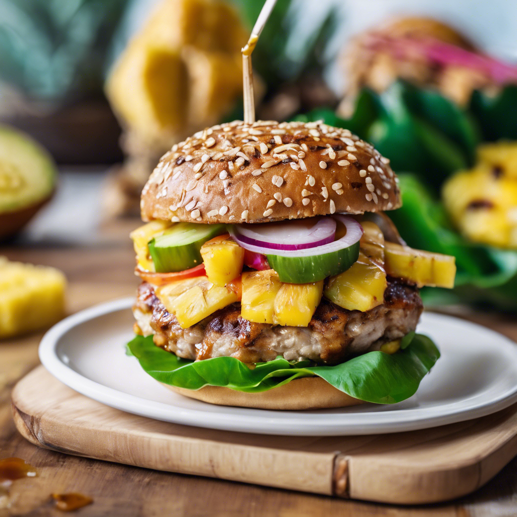 The Tropical Turkey Burger with pineapple slices and teriyaki sauce is a delightful fusion of flavors that originated in Hawaii. This mouthwatering burger is a popular menu item in many Hawaiian restaurants, where chefs expertly blend the sweetness of pineapple with the savory teriyaki sauce to create a tantalizing taste sensation. The lean and healthy turkey patty is grilled to perfection, then topped with juicy pineapple slices and a generous drizzle of tangy teriyaki sauce. The best version of this dish can be found in local Hawaiian eateries, where the use of fresh, high-quality ingredients is paramount. The key to getting this dish right lies in the balance of sweet and savory flavors, as well as the quality of the turkey patty and the freshness of the pineapple. For a unique twist, some chefs also add a touch of heat with a sprinkle of red pepper flakes or a slice of jalapeno. Whether enjoyed in a beachside restaurant in Hawaii or recreated at home, the Tropical Turkey Burger with pineapple slices and teriyaki sauce is a true island delight.