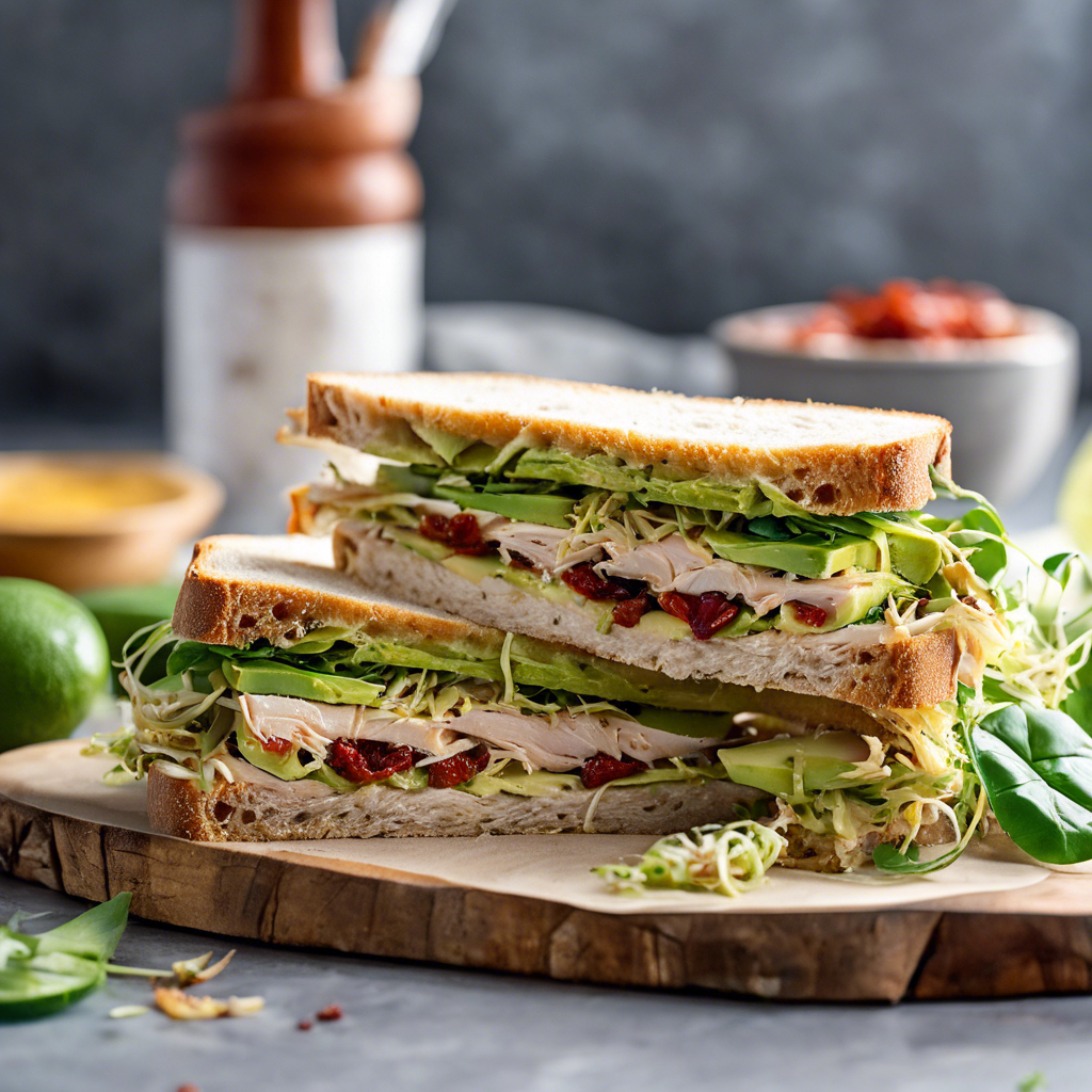 Turkey Avocado Sandwich with Sprouts and Sun-Dried Tomatoes