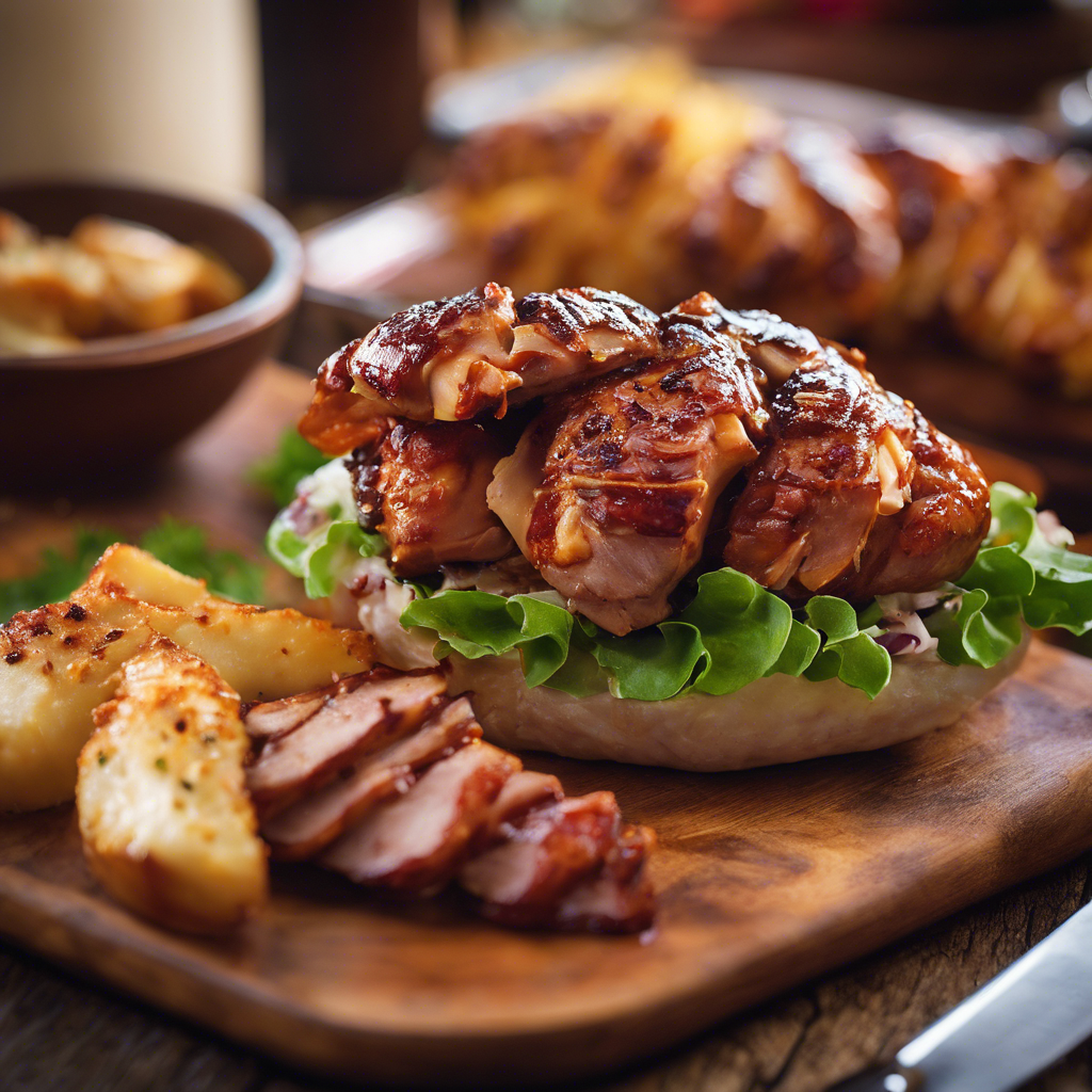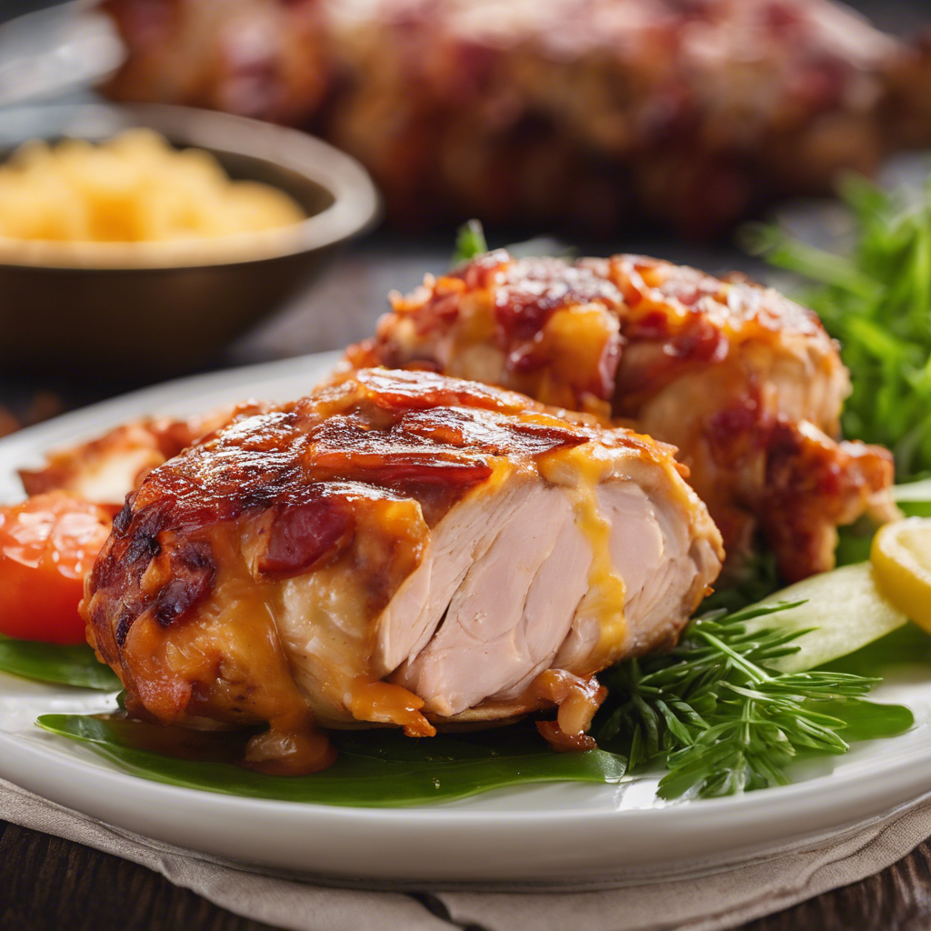 The Turkey Bacon Wrapped BBQ Stuffed Chicken Breast with extra cheese is a mouthwatering dish that combines the smoky flavors of turkey bacon, the savory goodness of BBQ sauce, and the richness of melted cheese. This delectable creation has its roots in the southern United States, where BBQ reigns supreme. Renowned chefs like Bobby Flay and Guy Fieri have put their own spin on this dish, elevating it to new heights. The best version of this dish can be found in BBQ joints and upscale restaurants across the South, where chefs take pride in perfecting the art of stuffing and wrapping chicken breasts. The key to making this dish shine is using high-quality turkey bacon, a flavorful BBQ sauce, and a generous amount of gooey cheese. For a twist, some chefs add jalapenos or caramelized onions to give the dish an extra kick. Whether you're a BBQ enthusiast or a cheese lover, this dish is sure to satisfy your cravings.