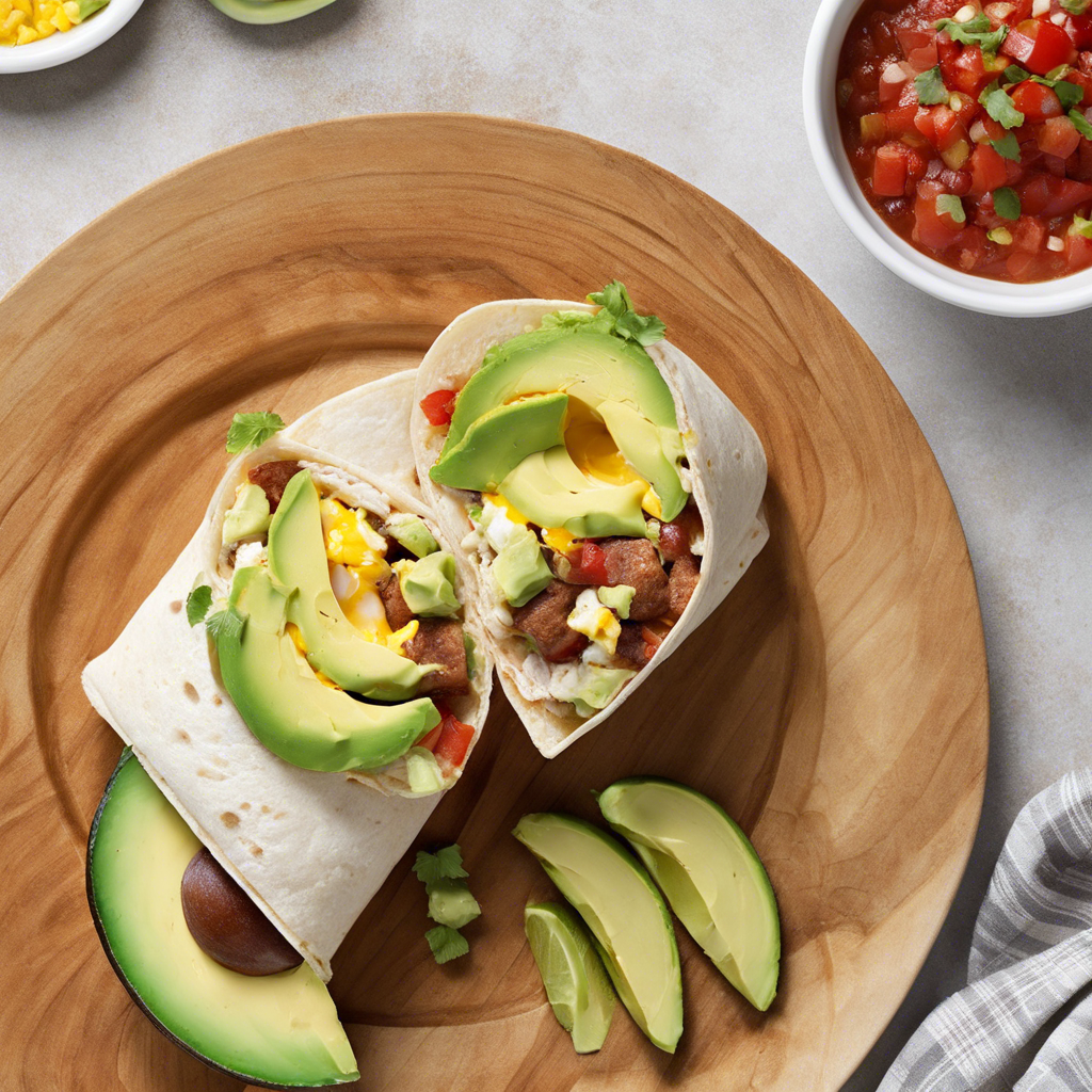Turkey Sausage Breakfast Burrito with Avocado and Salsa