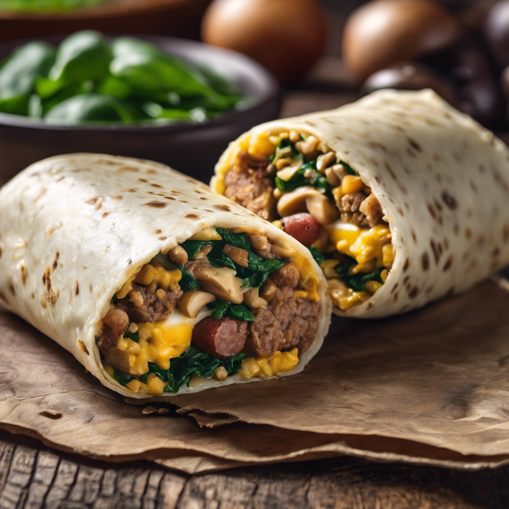 Turkey Sausage Breakfast Burrito with Spinach and Mushrooms