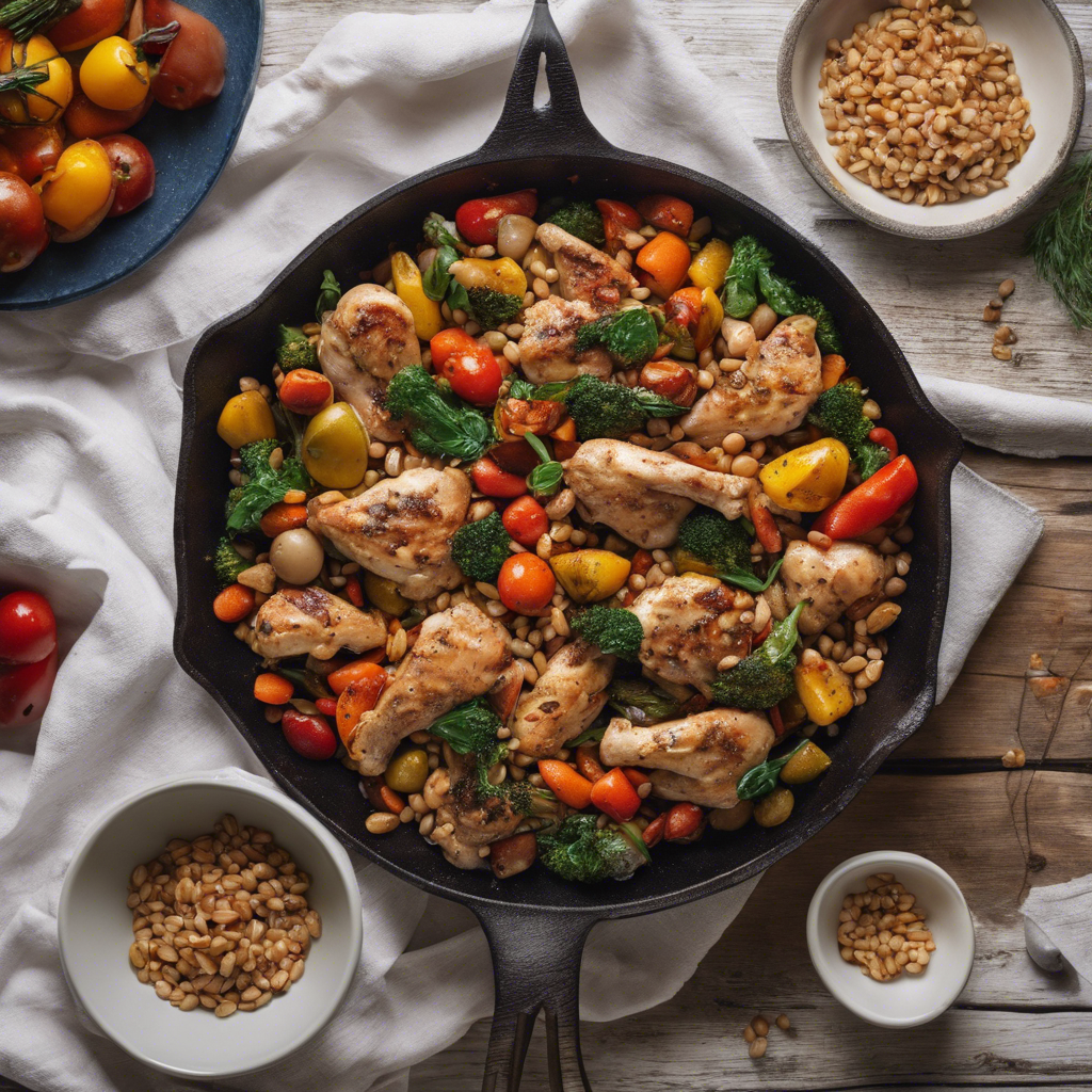 The Tuscan Chicken and Farro Skillet with roasted vegetables is a hearty and flavorful dish that originated in the Tuscan region of Italy. This rustic one-pan meal combines tender chicken, nutty farro, and a medley of roasted vegetables, creating a satisfying and wholesome dish. Renowned chefs in Tuscany, such as Fabio Picchi of Cibrèo in Florence, have perfected this dish, infusing it with the rich flavors of the region. The key to this dish lies in the quality of the ingredients, particularly the use of fresh, seasonal vegetables and aromatic herbs like rosemary and thyme. Today, the best versions of this dish can be found in authentic Tuscan trattorias and farm-to-table restaurants, where local, organic produce is celebrated. The roasted vegetables, including bell peppers, zucchini, and cherry tomatoes, add a delightful sweetness and depth to the dish, complementing the savory chicken and earthy farro. For a twist on the traditional recipe, some chefs may incorporate sun-dried tomatoes or olives for an extra burst of flavor. The dish can also be adapted to include other grains such as quinoa or barley, offering a versatile and customizable option for those seeking a healthier alternative. Whether enjoyed in the rolling hills of Tuscany or recreated at home, the Tuscan Chicken and Farro Skillet with roasted vegetables is a timeless and comforting culinary delight.