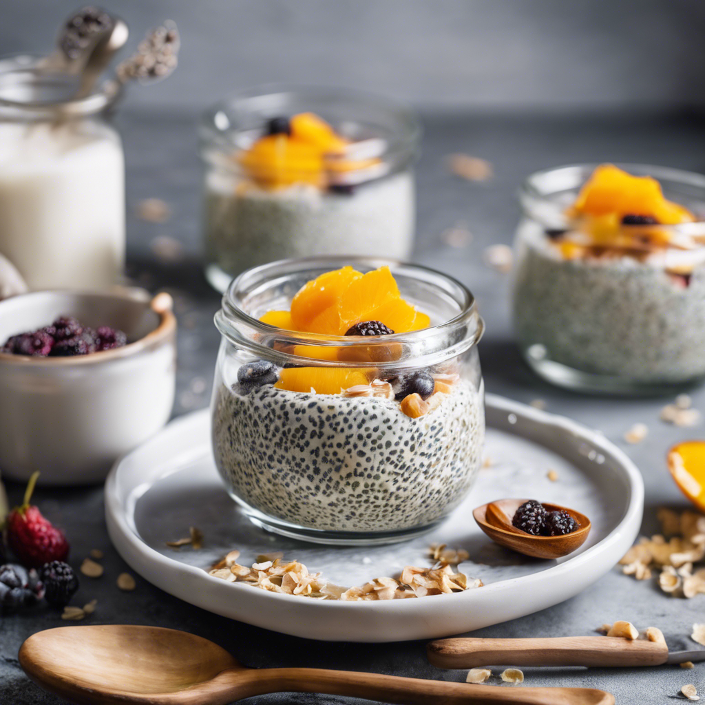 - In a mixing bowl, combine 1/4 cup of chia seeds, 1 cup of almond milk, 1 tablespoon of maple syrup, and 1 teaspoon of vanilla extract.