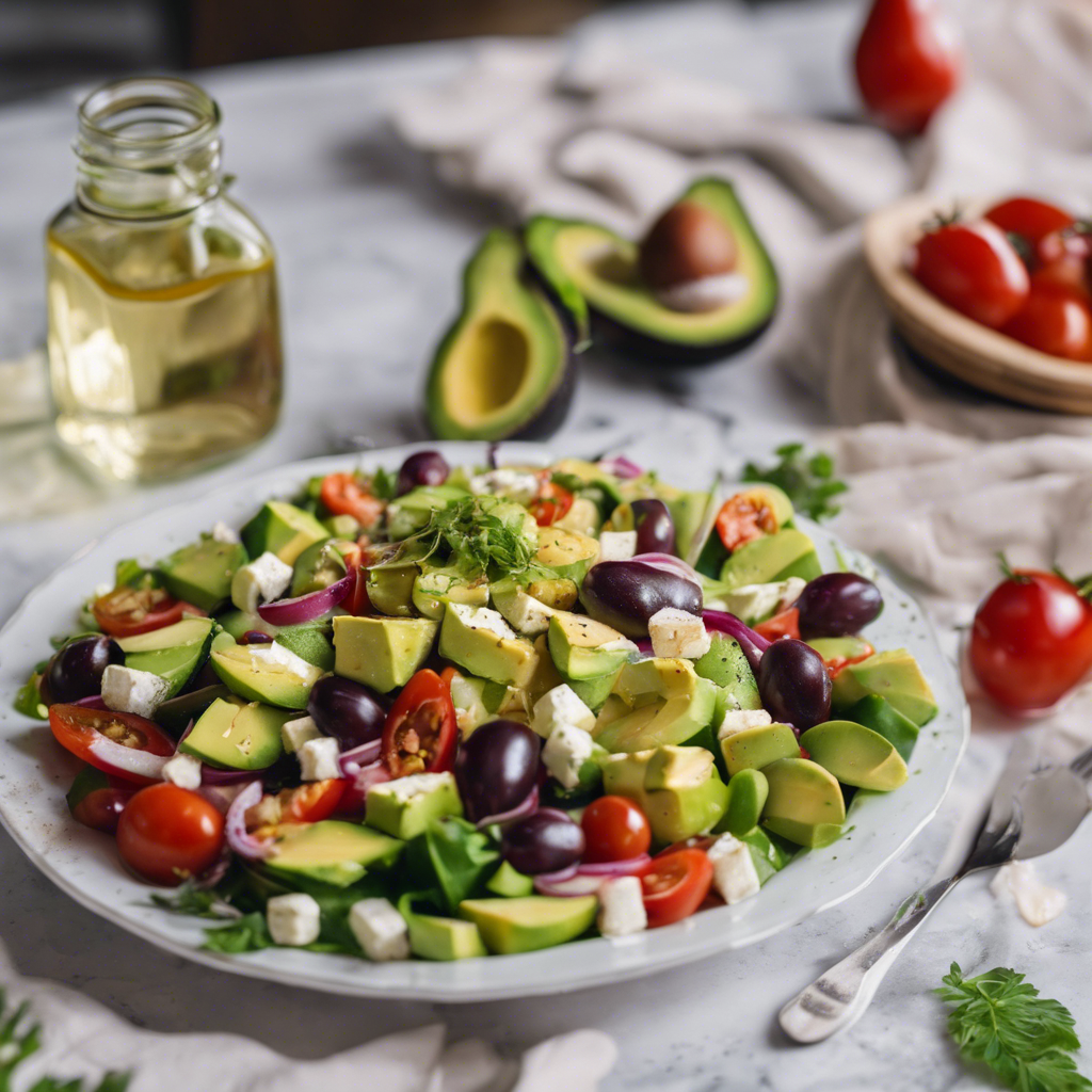 The Vegan Greek Salad is a classic Mediterranean dish that has been enjoyed for centuries. Originating in Greece, this salad traditionally consists of fresh cucumbers, juicy tomatoes, crisp bell peppers, tangy red onions, briny Kalamata olives, and creamy vegan feta cheese, all drizzled with a zesty dressing of olive oil, lemon juice, and oregano. The addition of ripe avocado brings a buttery texture and rich flavor to this already vibrant and refreshing salad. While the traditional Greek Salad is a staple in Greek cuisine, the addition of avocado adds a modern twist, elevating the dish with its creamy goodness. Chefs and home cooks alike have embraced this fusion of flavors, creating a delightful harmony of textures and tastes. Today, the best versions of this dish can be found in vegan and Mediterranean restaurants that prioritize using the freshest and highest quality ingredients. When making this salad, it's crucial to select perfectly ripe avocados and to balance the flavors of the other ingredients to achieve the ideal blend of savory, tangy, and creamy notes. Whether enjoyed as a light lunch or a side dish to complement a main course, the Vegan Greek Salad with added avocado is a delightful celebration of Mediterranean flavors with a modern twist.