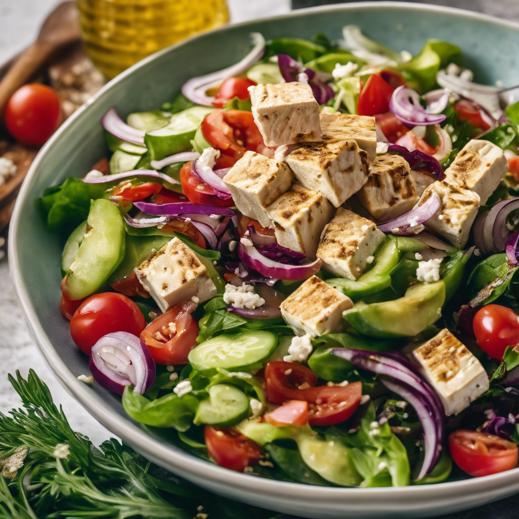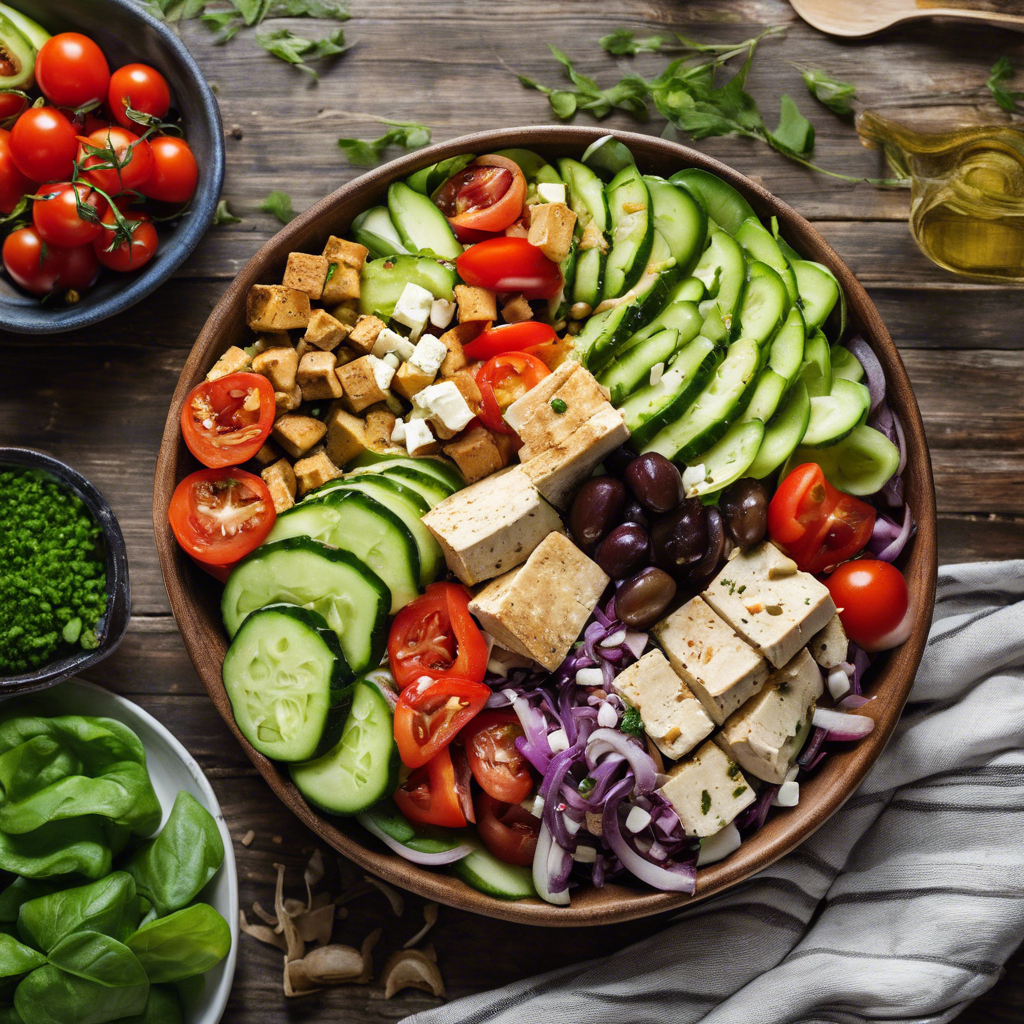 The Vegan Tofu Greek Salad is a modern twist on the classic Greek salad, replacing feta cheese with marinated tofu to create a delicious plant-based alternative. This innovative dish has gained popularity in the health-conscious and vegan communities, offering a refreshing and nutritious option for those seeking a dairy-free Greek salad. Renowned chefs and restaurants in cosmopolitan cities like New York, Los Angeles, and London have embraced this creative recipe, infusing it with their own unique flair. The key to a perfect Vegan Tofu Greek Salad lies in the marination of the tofu, using traditional Greek herbs and olive oil to capture the authentic Mediterranean flavors. For a delightful alternative, some chefs incorporate roasted chickpeas or cashew-based "feta" to elevate the dish. Today, the best versions of this salad can be savored in trendy vegan eateries and Mediterranean-inspired restaurants, where the harmony of fresh vegetables, tangy dressing, and savory tofu creates a symphony of flavors.