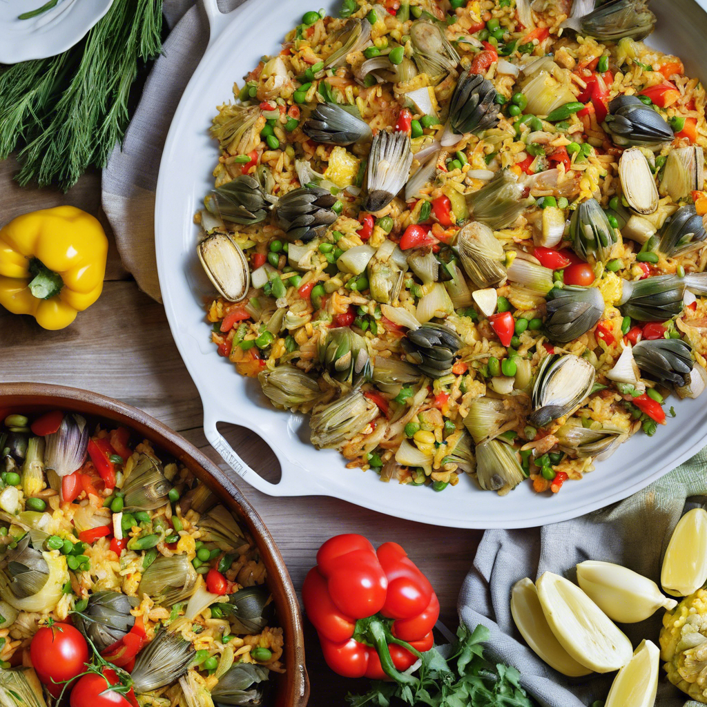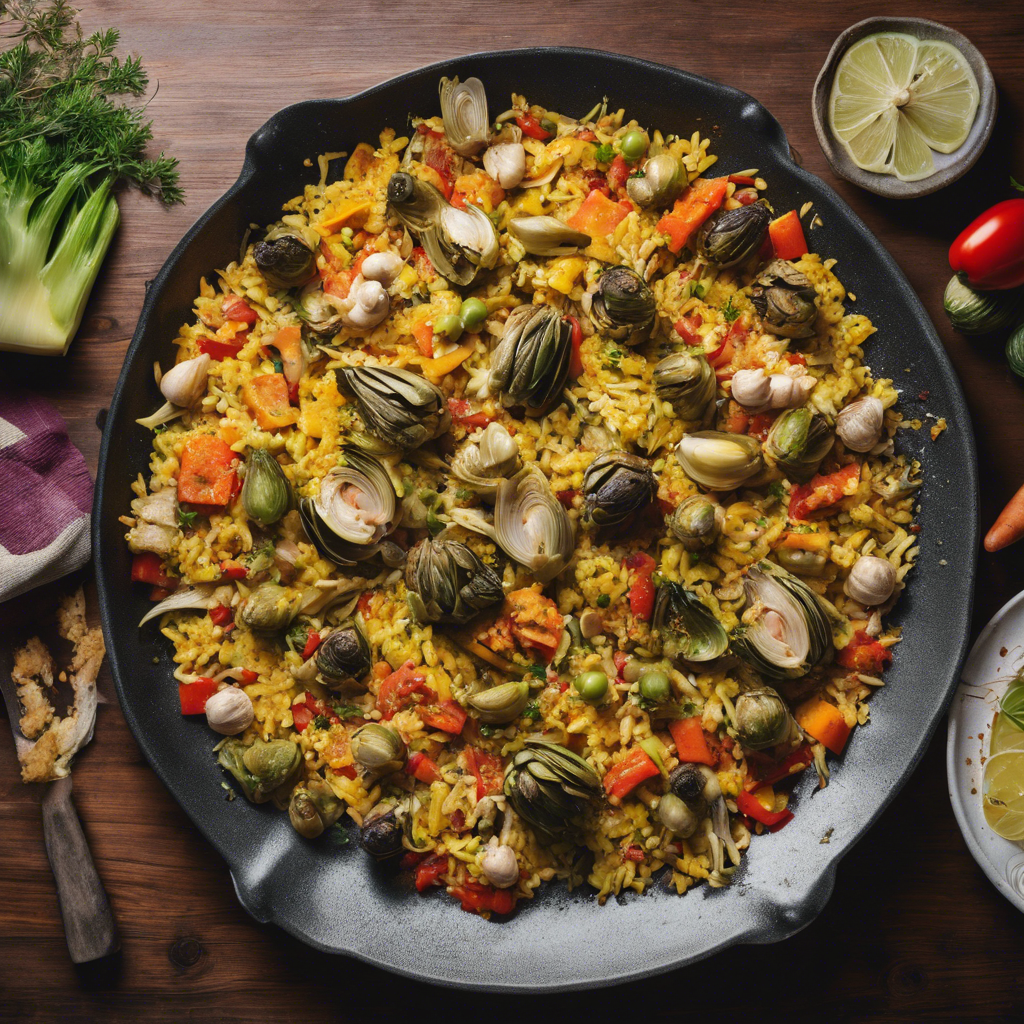 Vegetable paella is a traditional Spanish dish that originated in the Valencia region. This flavorful and colorful dish is typically made with rice, saffron, and a variety of vegetables, such as bell peppers, tomatoes, and peas. The addition of artichokes brings a unique and earthy flavor to the dish, making it a popular variation. The history of vegetable paella dates back to the mid-19th century when it was created by farm laborers who cooked rice with readily available ingredients. Over time, it evolved into a beloved vegetarian option, often enjoyed during festive gatherings and family meals. Today, renowned chefs and restaurants across Spain, particularly in Valencia, have perfected the art of making vegetable paella with added artichokes. The key to a delicious vegetable paella lies in using high-quality saffron, fresh vegetables, and the perfect balance of flavors. While some chefs prefer to cook the dish over an open flame for a smoky essence, others opt for a more modern approach using specialized paella pans. For those seeking the best version of this dish, visiting Valencia or authentic Spanish restaurants known for their traditional paella is a must. The artichokes in vegetable paella add a delightful texture and a slightly nutty taste, elevating the overall dining experience. Whether enjoyed as a main course or as part of a tapas spread, vegetable paella with added artichokes is a delightful representation of Spanish culinary heritage.