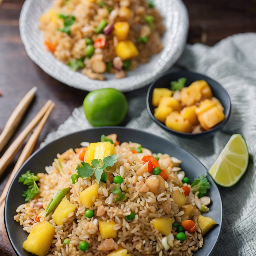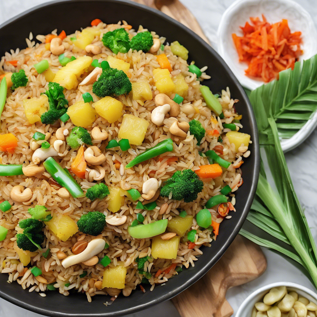Vegetable Pineapple Fried Rice with added cashews is a delightful fusion dish that originated in Southeast Asia. This flavorful combination of sweet pineapple, crunchy cashews, and savory fried rice has become a popular choice for those seeking a unique and satisfying meal. The dish is believed to have been created by innovative chefs in Thailand or Indonesia, where the abundance of fresh produce and aromatic spices inspired the creation of this vibrant dish. Today, this dish can be found in Thai and Indonesian restaurants around the world, with each chef adding their own twist to the recipe. The key to a perfect Vegetable Pineapple Fried Rice with added cashews lies in achieving the right balance of flavors and textures, with the sweetness of the pineapple complementing the nuttiness of the cashews and the savory notes of the fried rice. For those looking to try this dish at home, it's important to use high-quality ingredients and to pay attention to the cooking process to ensure that each component is cooked to perfection. Whether enjoyed as a main course or as a side dish, Vegetable Pineapple Fried Rice with added cashews is a delightful culinary experience that is sure to satisfy the palate.