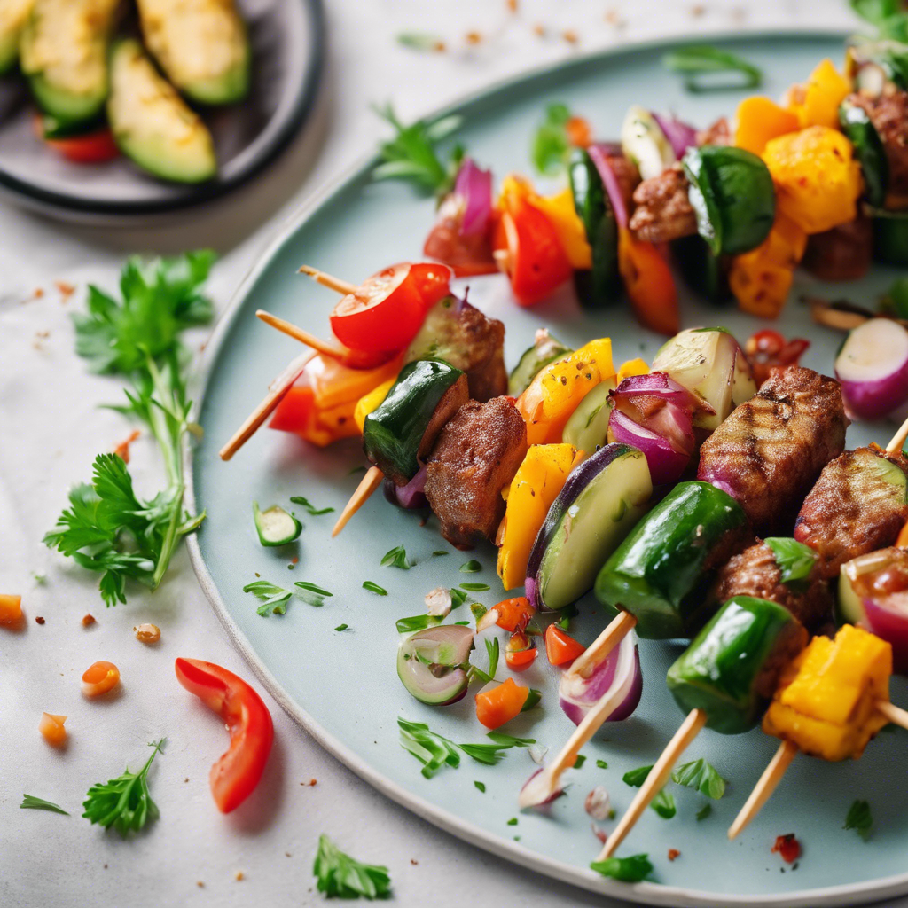 - Thread the vegetable chunks onto skewers, alternating between the different vegetables. Place the assembled kebabs in a shallow dish and pour the marinade over them, turning to coat. Let them marinate for at least 20 minutes.