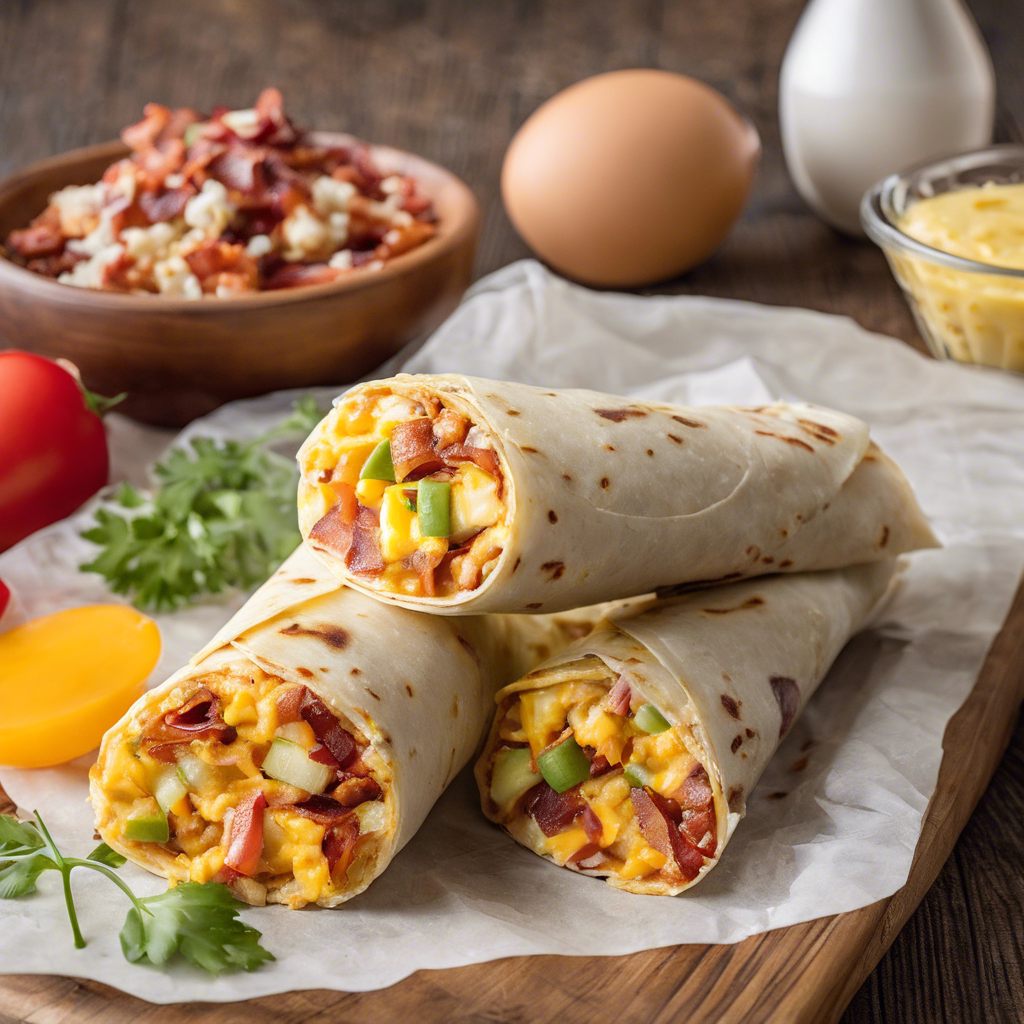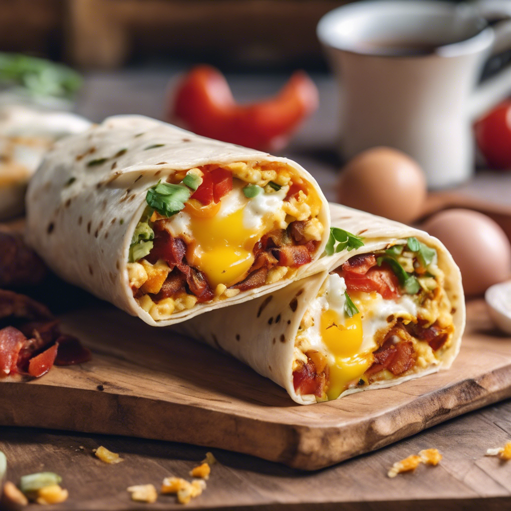The Veggie Bacon, Egg, and Cheese Breakfast Burrito with spicy salsa has a rich history rooted in the fusion of Mexican and American breakfast traditions. This delectable dish gained popularity in the Southwestern United States, particularly in regions like California and Texas, where Mexican flavors and American breakfast staples collide. Renowned chefs like Rick Bayless and Bobby Flay have put their own spin on this classic, incorporating fresh, locally sourced ingredients and bold, spicy salsas. Today, the best versions of this dish can be found in authentic Mexican eateries and trendy brunch spots. The key to perfecting this breakfast burrito lies in the balance of savory veggie bacon, fluffy eggs, gooey cheese, and a fiery, homemade salsa. Whether it's enjoyed as a grab-and-go breakfast or a leisurely brunch, this flavorful burrito is a must-try for food enthusiasts seeking a satisfying and spicy morning kickstart.