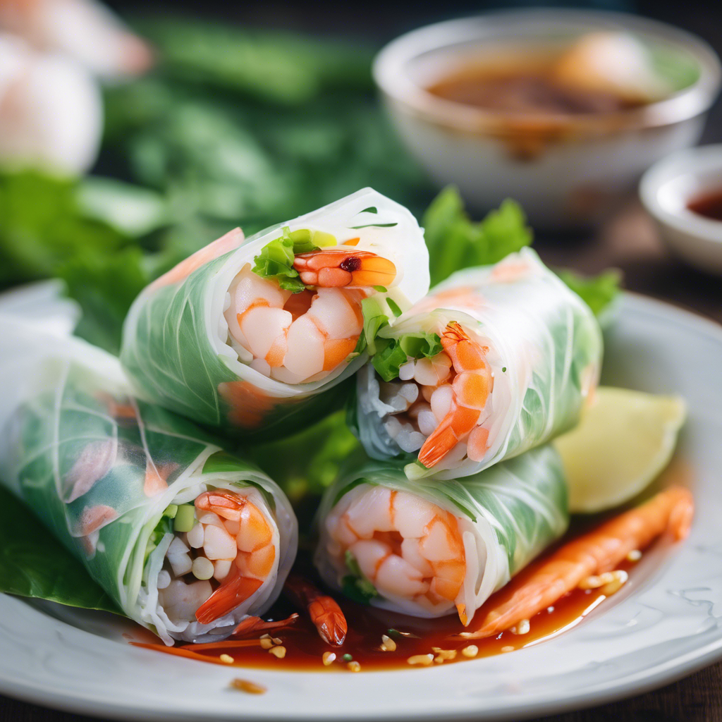 Vietnamese Shrimp Summer Rolls, also known as Goi Cuon, are a popular dish in Vietnamese cuisine. These fresh and healthy rolls are made with shrimp, vermicelli noodles, fresh herbs, and lettuce, all wrapped in rice paper. Originating in the Mekong Delta region, this dish has a rich history dating back to the 1950s. Renowned chefs like Luke Nguyen and Mai Pham have popularized this dish in their restaurants, infusing their own unique flavors and techniques. Today, the best version of this dish can be found in the bustling streets of Ho Chi Minh City, where the freshest ingredients are used to create these delectable rolls. The key to perfecting this dish lies in the freshness of the ingredients and the delicate balance of flavors. For a twist, some chefs incorporate alternative ingredients such as grilled pork or tofu to cater to different dietary preferences. Whether enjoyed as an appetizer or a light meal, Vietnamese Shrimp Summer Rolls continue to captivate food enthusiasts worldwide.