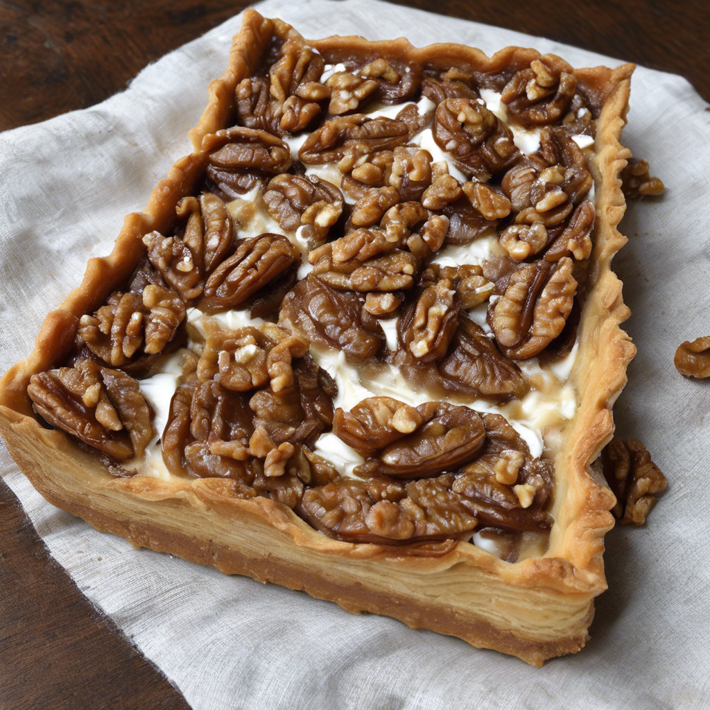The Walnut Tart, topped with caramelized walnuts, is a delectable dessert that has a rich history dating back to the European culinary traditions. This indulgent treat features a buttery, flaky crust filled with a luscious mixture of ground walnuts, sugar, and eggs, creating a delightful contrast of textures and flavors. Renowned chefs in regions such as France and Austria have perfected this recipe, infusing their unique culinary expertise into this timeless dessert. Today, the best versions of this delectable tart can be found in artisanal bakeries and patisseries that prioritize using high-quality walnuts and perfecting the art of caramelization. The key to achieving the perfect Walnut Tart lies in the balance of sweetness and nuttiness, as well as achieving a crisp, golden caramelized topping. Whether enjoyed on its own or paired with a dollop of whipped cream or a scoop of vanilla ice cream, this Walnut Tart is a true delight for the senses.