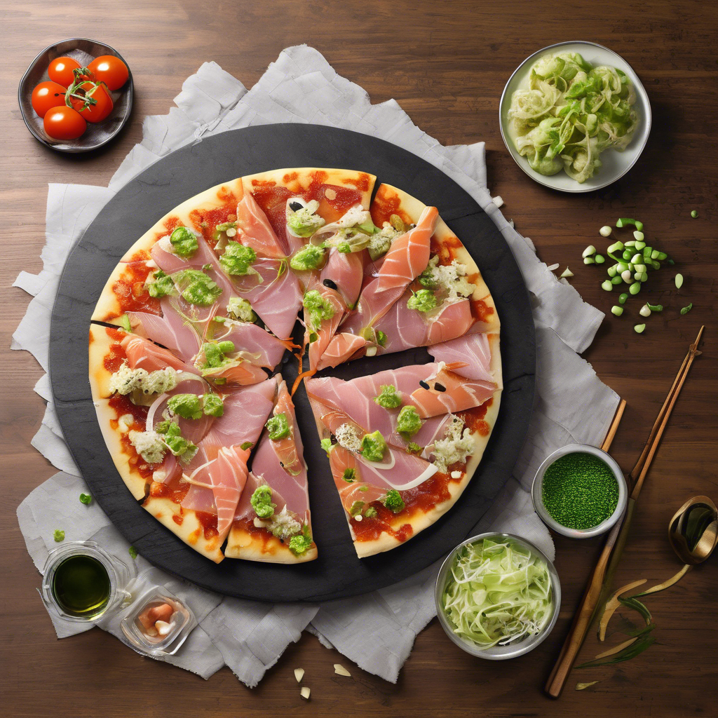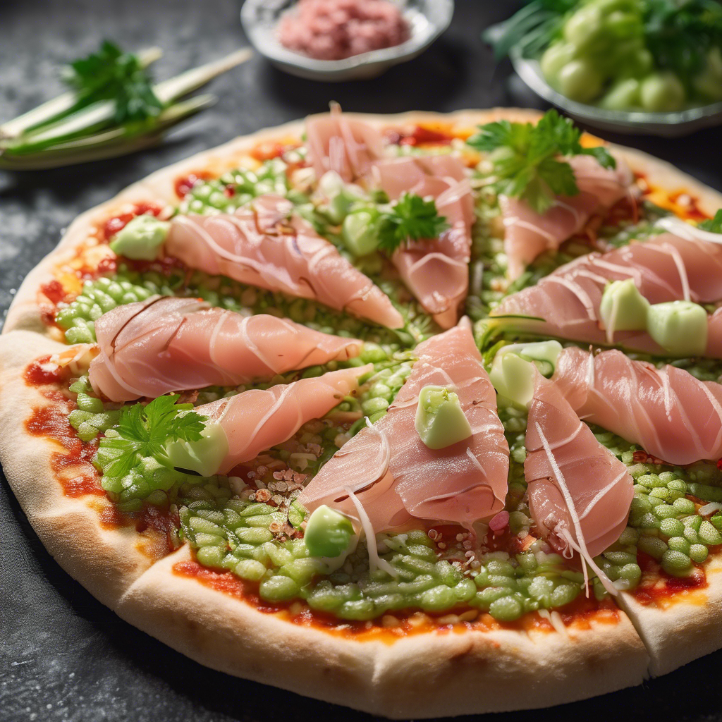 The Wasabi-Infused Sashimi Pizza with an extra wasabi kick is a unique fusion dish that combines the flavors of traditional Japanese sashimi with the Italian classic, pizza. This innovative creation originated in the bustling culinary scene of Tokyo, where visionary chefs sought to push the boundaries of traditional cuisine. The dish features a thin, crispy pizza crust topped with fresh sashimi slices, drizzled with a wasabi-infused sauce that packs an extra punch. The best versions of this dish can be found in high-end sushi restaurants in Tokyo, where skilled chefs expertly balance the heat of the wasabi with the delicate flavors of the sashimi. The key to perfecting this dish lies in sourcing the freshest sashimi and using high-quality wasabi to achieve that unmistakable kick. For those looking to recreate this dish at home, it's essential to finely grate fresh wasabi root for an authentic and intense flavor. Whether enjoyed in Tokyo or homemade, the Wasabi-Infused Sashimi Pizza with an extra wasabi kick is a culinary adventure that tantalizes the taste buds with its bold and harmonious flavors.