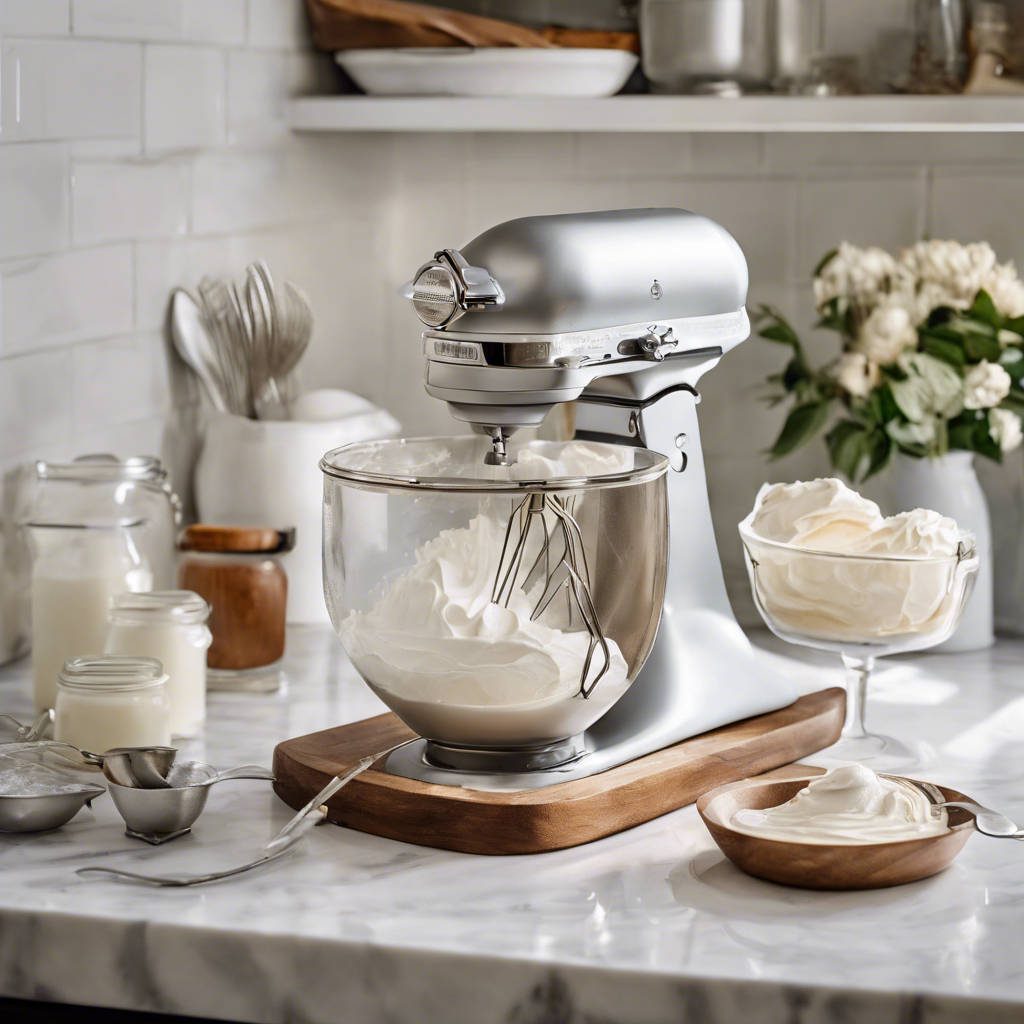 - Pour 1 cup of heavy whipping cream into the chilled mixing bowl.