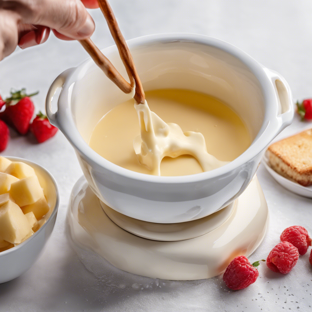 - Transfer the white chocolate fondue to a fondue pot or a serving bowl.