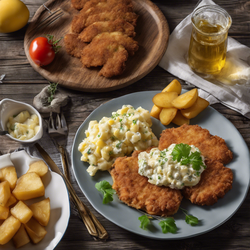 Wiener Schnitzel with Potato Salad is a classic Austrian dish that has become popular worldwide. The history of Wiener Schnitzel dates back to the 19th century in Vienna, Austria. It is said to have been brought to Vienna by Field Marshal Radetzky, who discovered a similar dish in Italy and introduced it to the Austrian cuisine. The dish consists of a breaded and fried veal cutlet, traditionally served with a side of potato salad. The key to a perfect Wiener Schnitzel lies in the thinness of the meat and the crispy golden breading. The potato salad is typically made with boiled potatoes, onions, vinegar, and oil, creating a tangy and creamy side dish that complements the richness of the schnitzel. In Austria, the dish is a staple in traditional Viennese restaurants such as Figlmüller, a renowned establishment known for serving the "world's largest Wiener Schnitzel." The dish has also gained popularity in German cuisine, where it is often made with pork instead of veal. Today, the best versions of Wiener Schnitzel with Potato Salad can be found in authentic Austrian and German restaurants that prioritize using high-quality, thinly pounded meat and fresh, flavorful ingredients for the potato salad. For those looking to recreate this dish at home, it's essential to pay attention to the breading technique and the balance of flavors in the potato salad to achieve an authentic and delicious result.