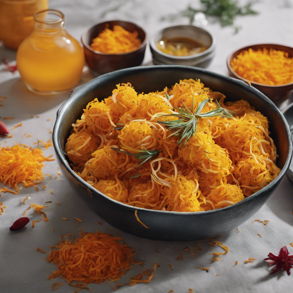 A delicious Middle Eastern dessert made with shredded phyllo dough, filled with a creamy pistachio mixture, and topped with a sprinkle of crushed pistachios.
