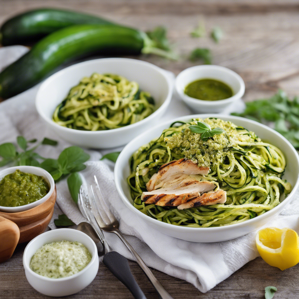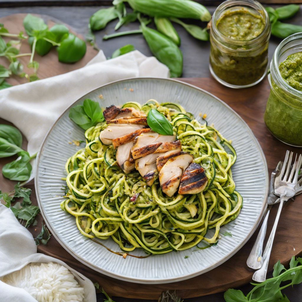 Zucchini Noodles with Pesto and Grilled Chicken